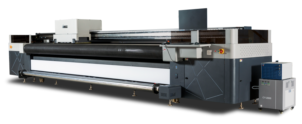 The H5 UV Hybrid Printer is a heavy-duty model with an wide format, capable of delivering high-speed, high-quality UV printing at an ultra-wide 5.3-meter format.