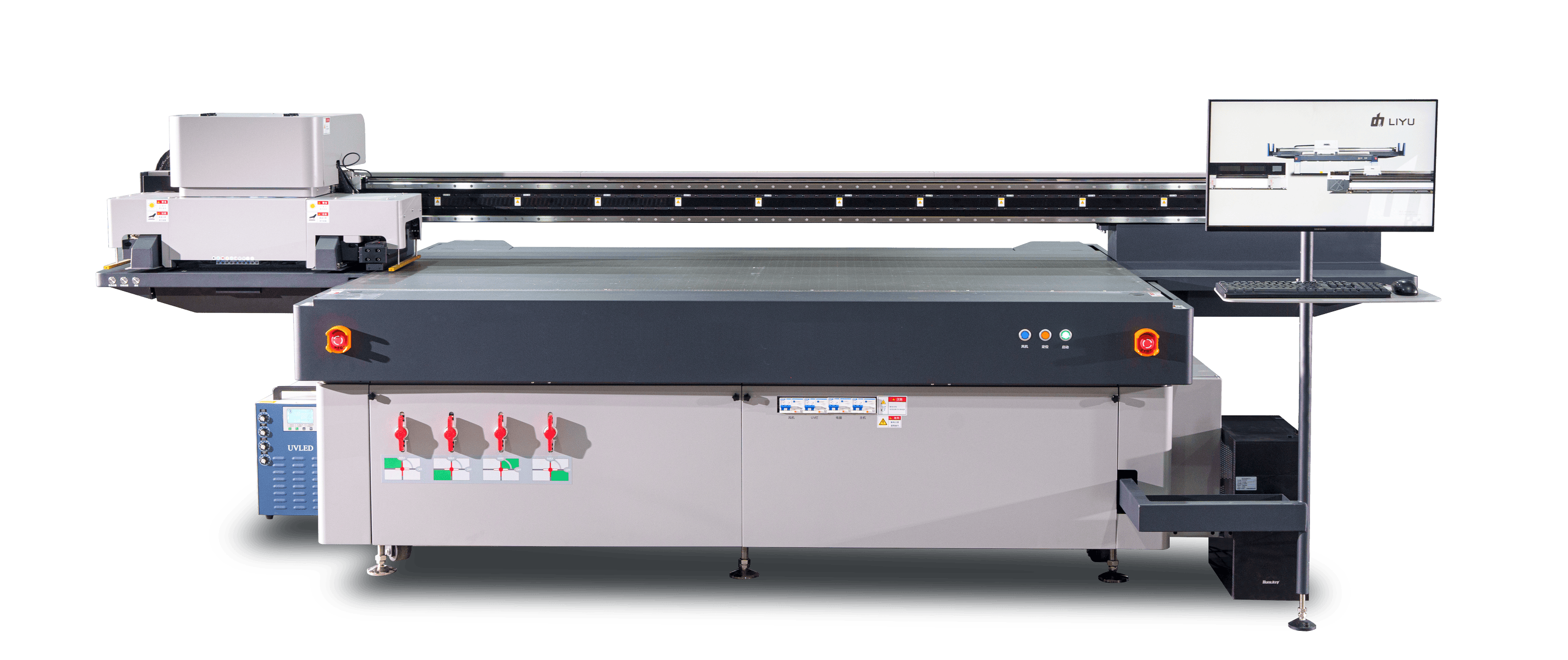 UV Hybrid Printer: An integrated solution for both ultra-wide-format roll materials & flatbeds. With a 6.8-meter extra-wide format and dual roll/flatbed capability, this solution empowers you to dominate both large-format advertising and batch sheet production markets.